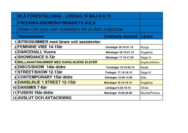 Fredagen 29 maj och lördagen 30 maj är det föreställningar på Fredrika Bremergymnasiet för alla våra elever.